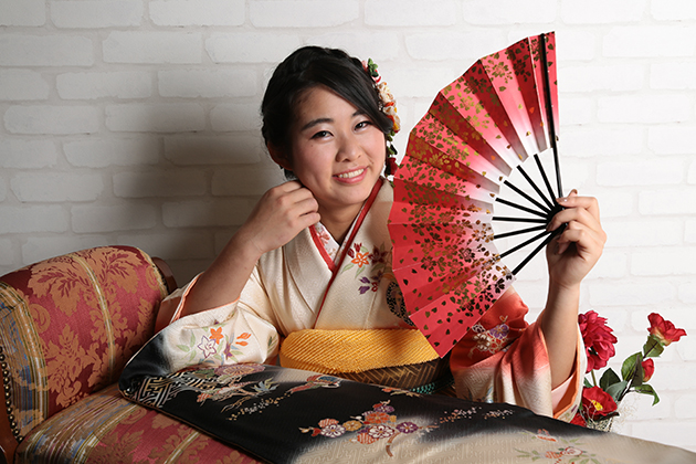 振り袖をお持ち込みしていただき、当店にてヘアメイク・着付け・撮影をさせていただきました。