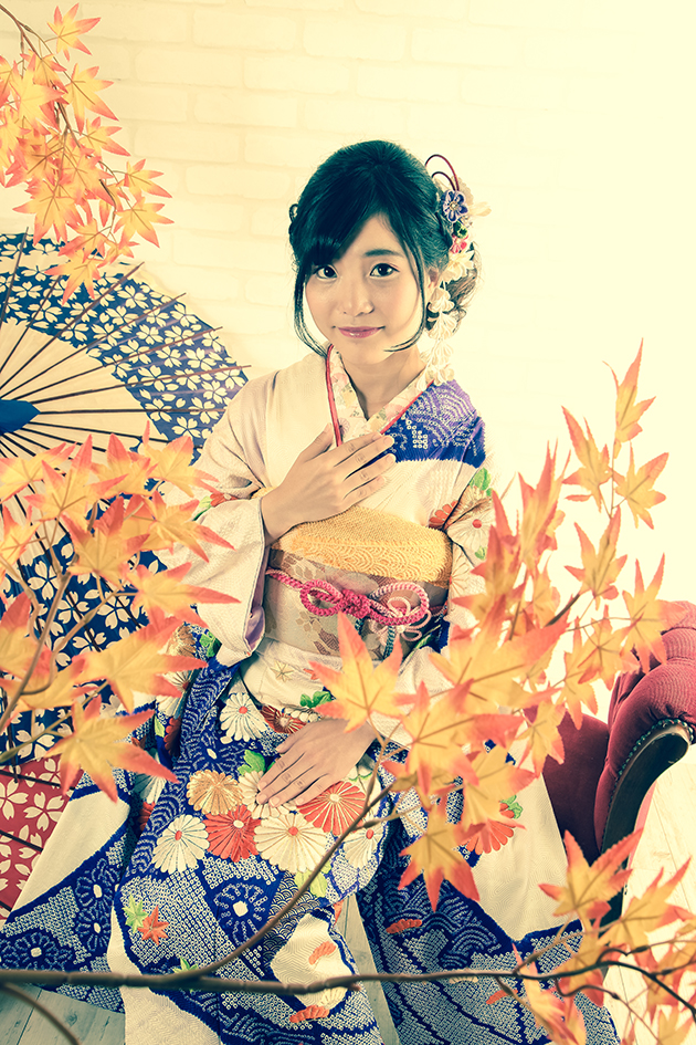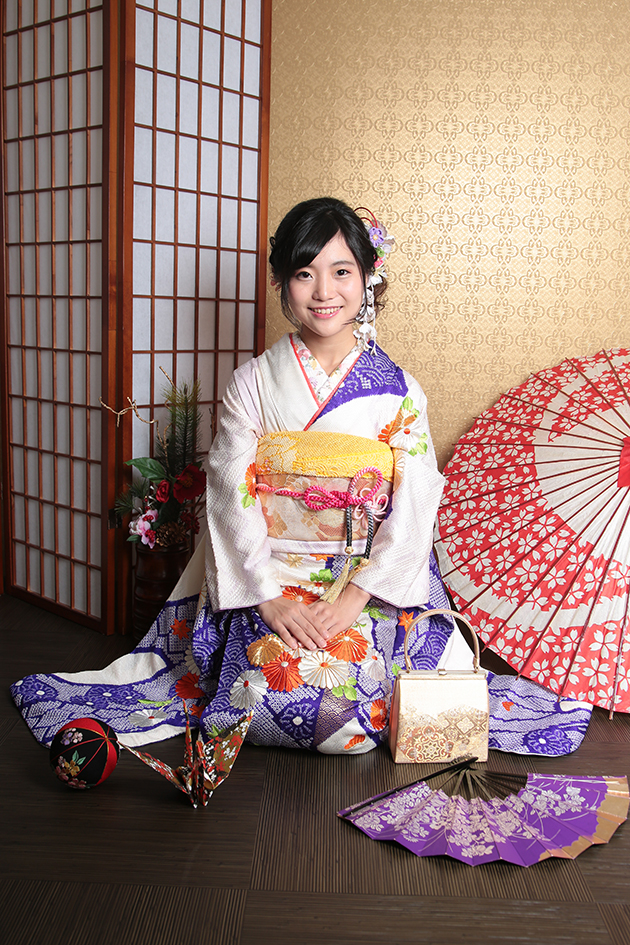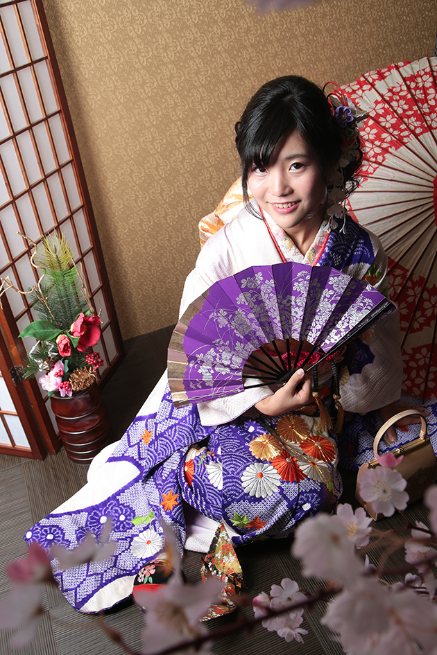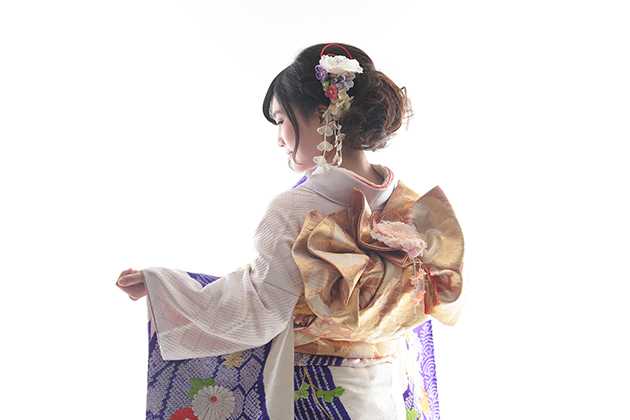 振袖をお持ち込みいただき、当店にてお着付け・ヘアメイク・ご撮影をさせていただきました。