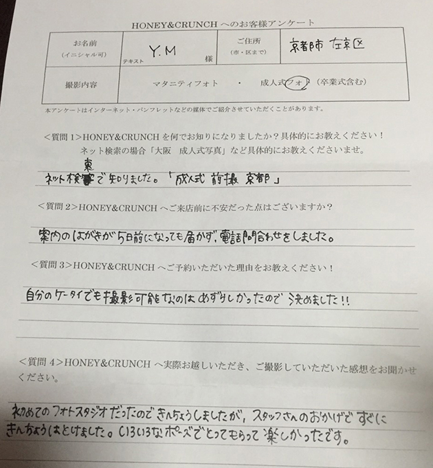大阪の成人式 前撮り写真館撮影スタジオならハニーアンドクランチHOME > 口コミ・評判情報(お客様アンケート・お客様の声)