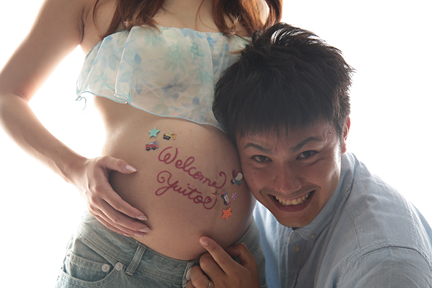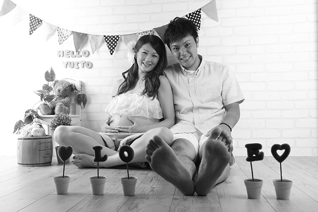 マタニティの撮影でご主人さまと一緒にご来店いただきました。